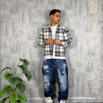 Il modello è alto 180cm x 76kg. Indossa una L. Camicia taglio vivo con vestibilità cropped. Colori clamorosi. Bellissima