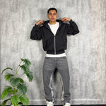 Il modello è alto 180cm x 78kg. Indossa una L. Felpa in cotone morbidissima, zip e vestibilità crop. Must have.