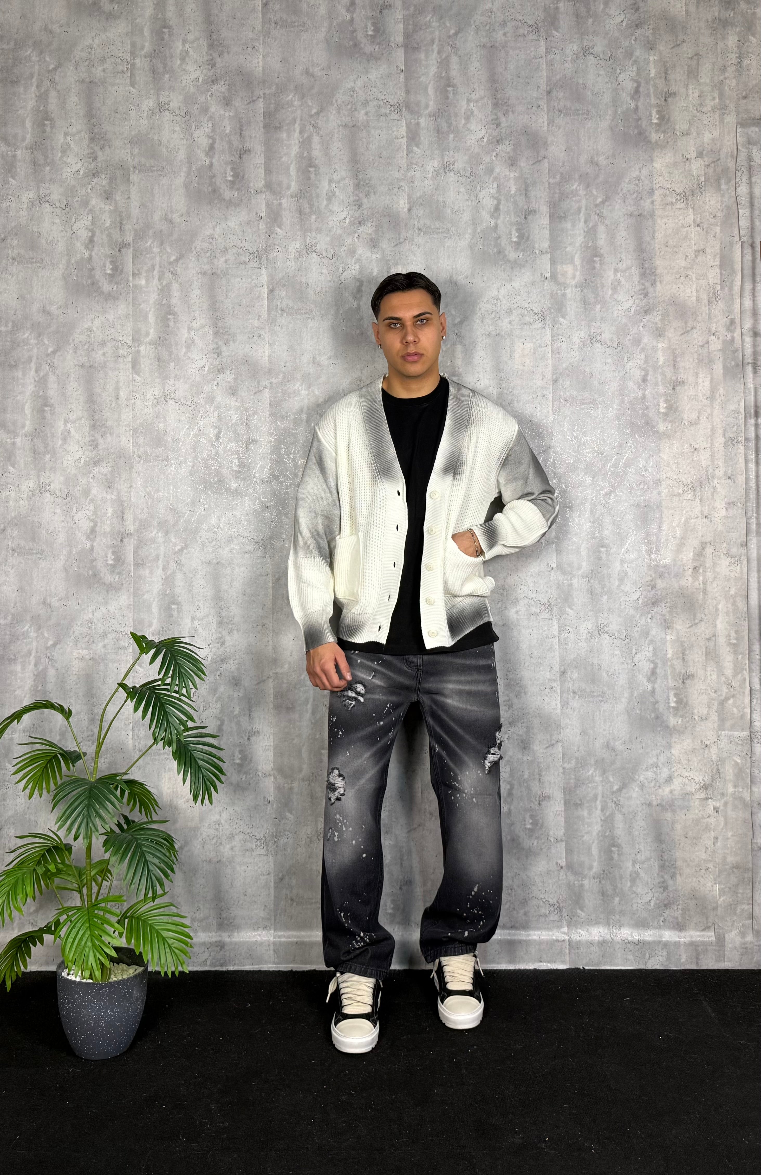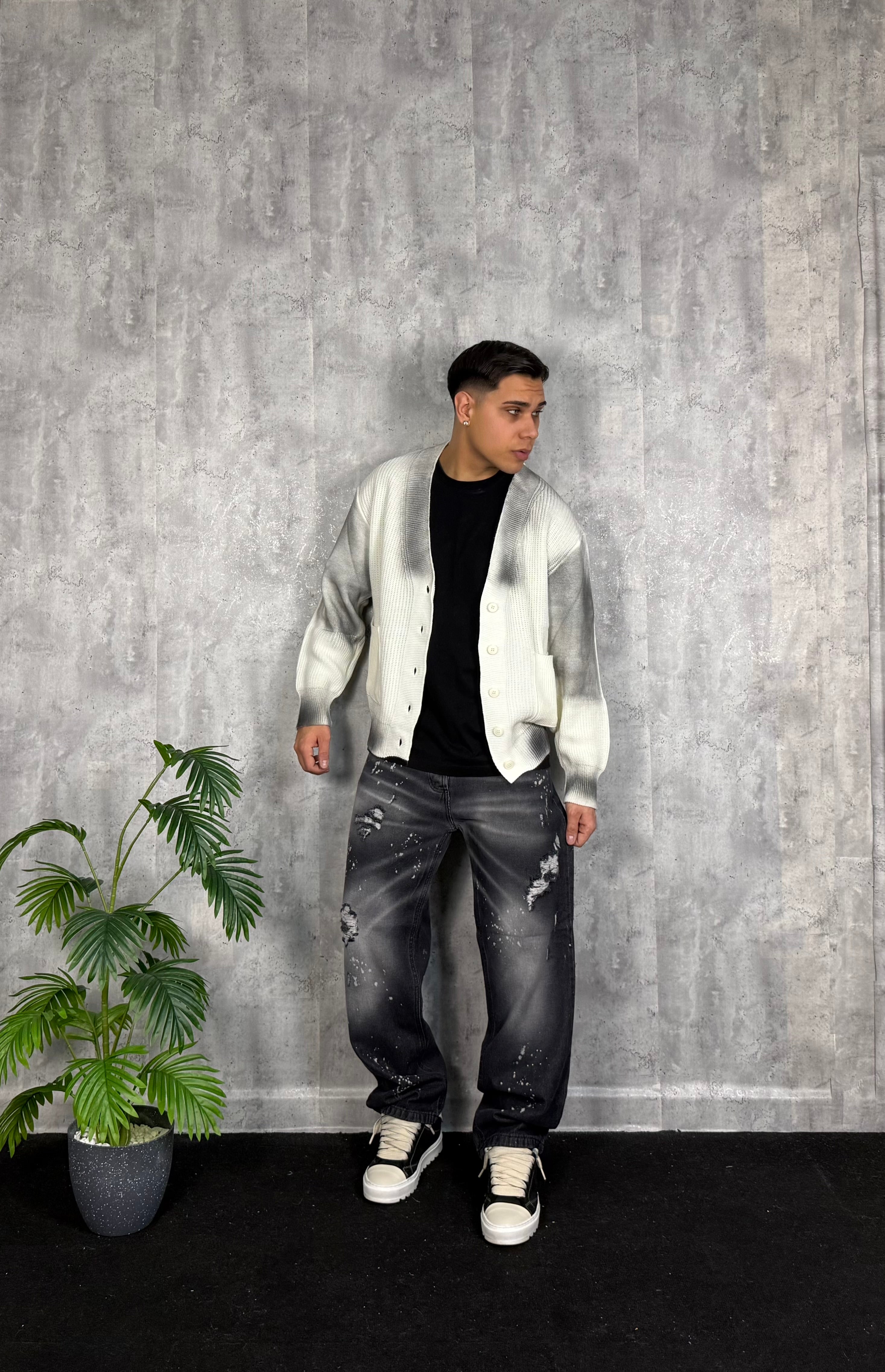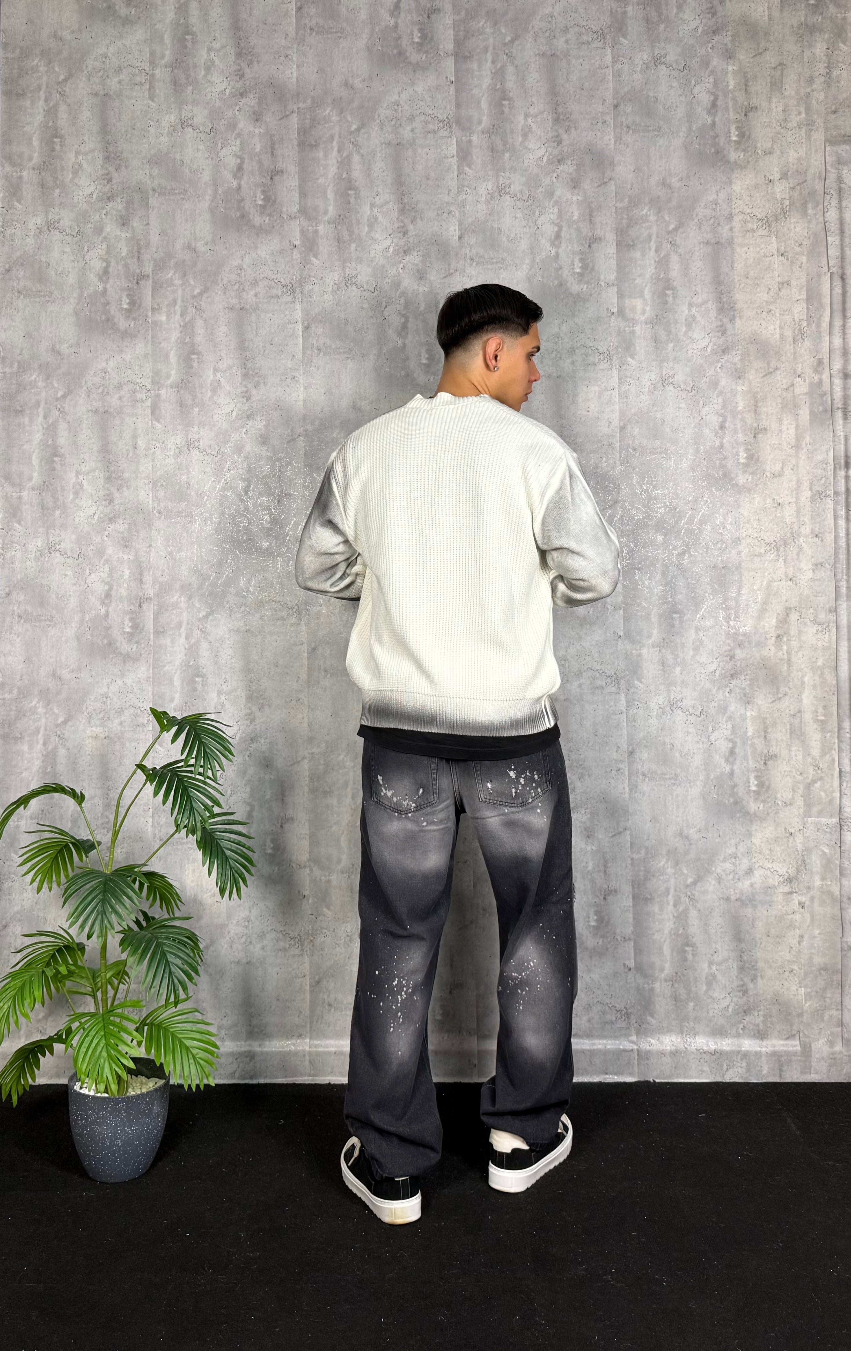 Il modello è alto 180cm x 76kg. Indossa una 48. Jeans Baggy con strappi e schizzi. Lavaggio bellissimo e fit clamoroso. Special edition