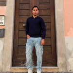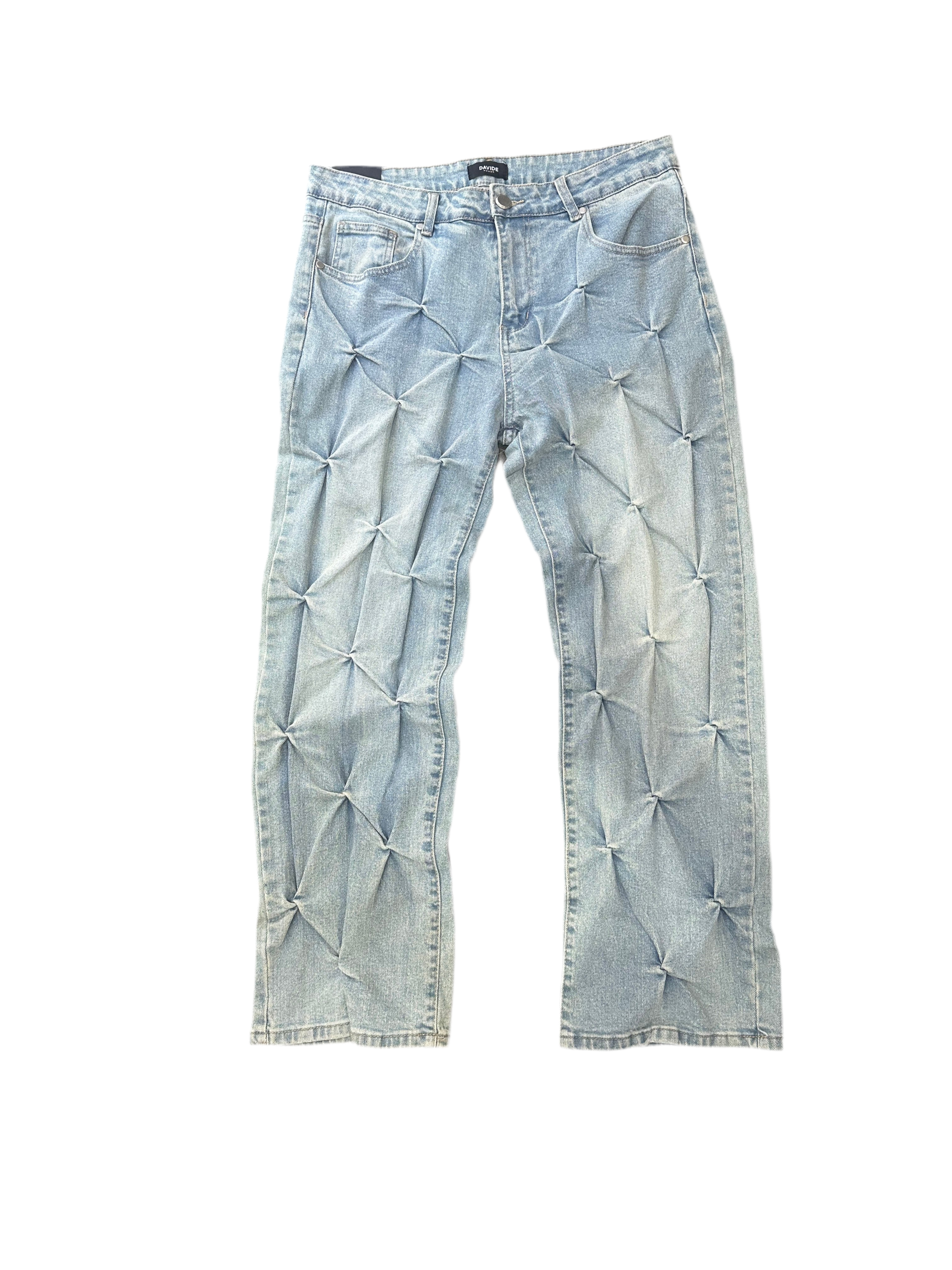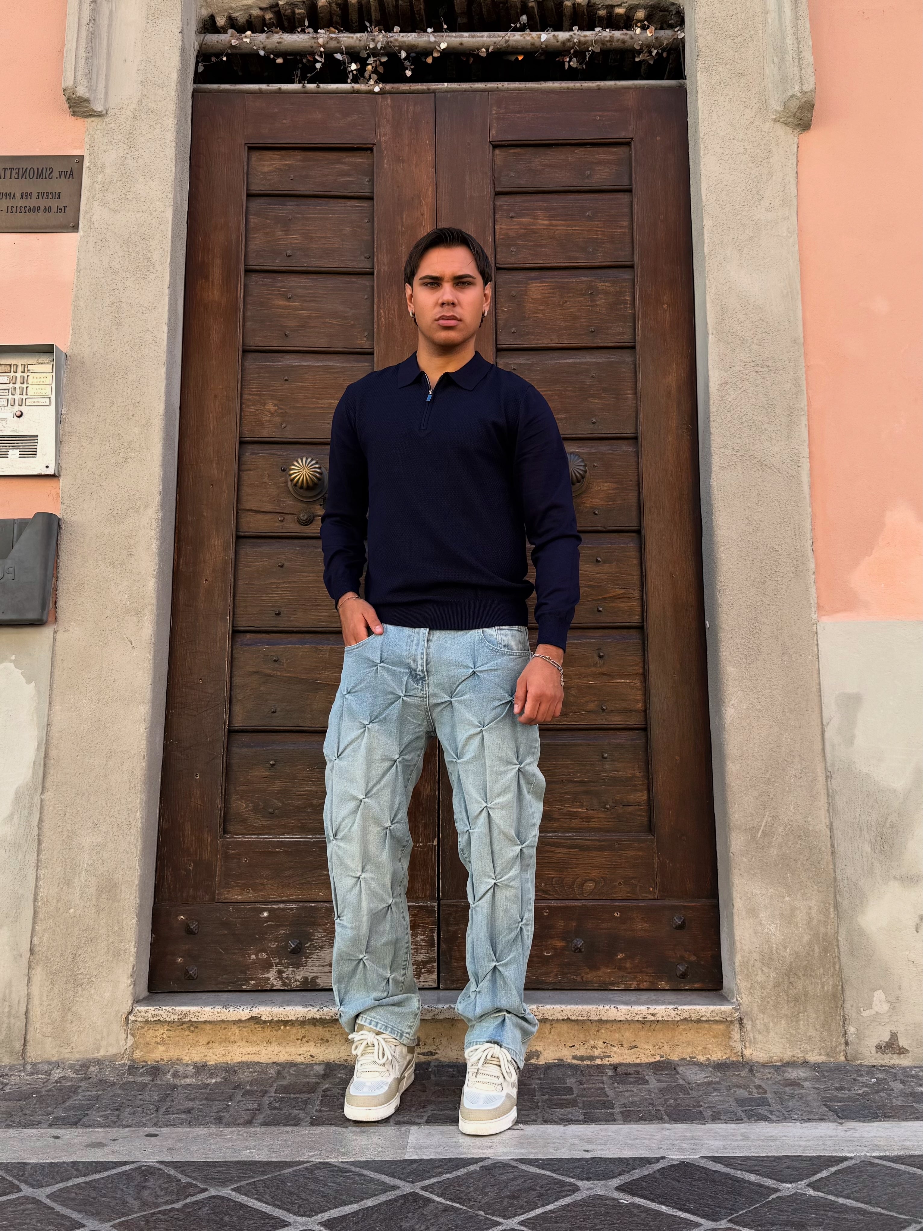 Jeans Baggy tutto impunturato con arricciature sul tessuto. Qualità molto alta. Vestibilità baggy