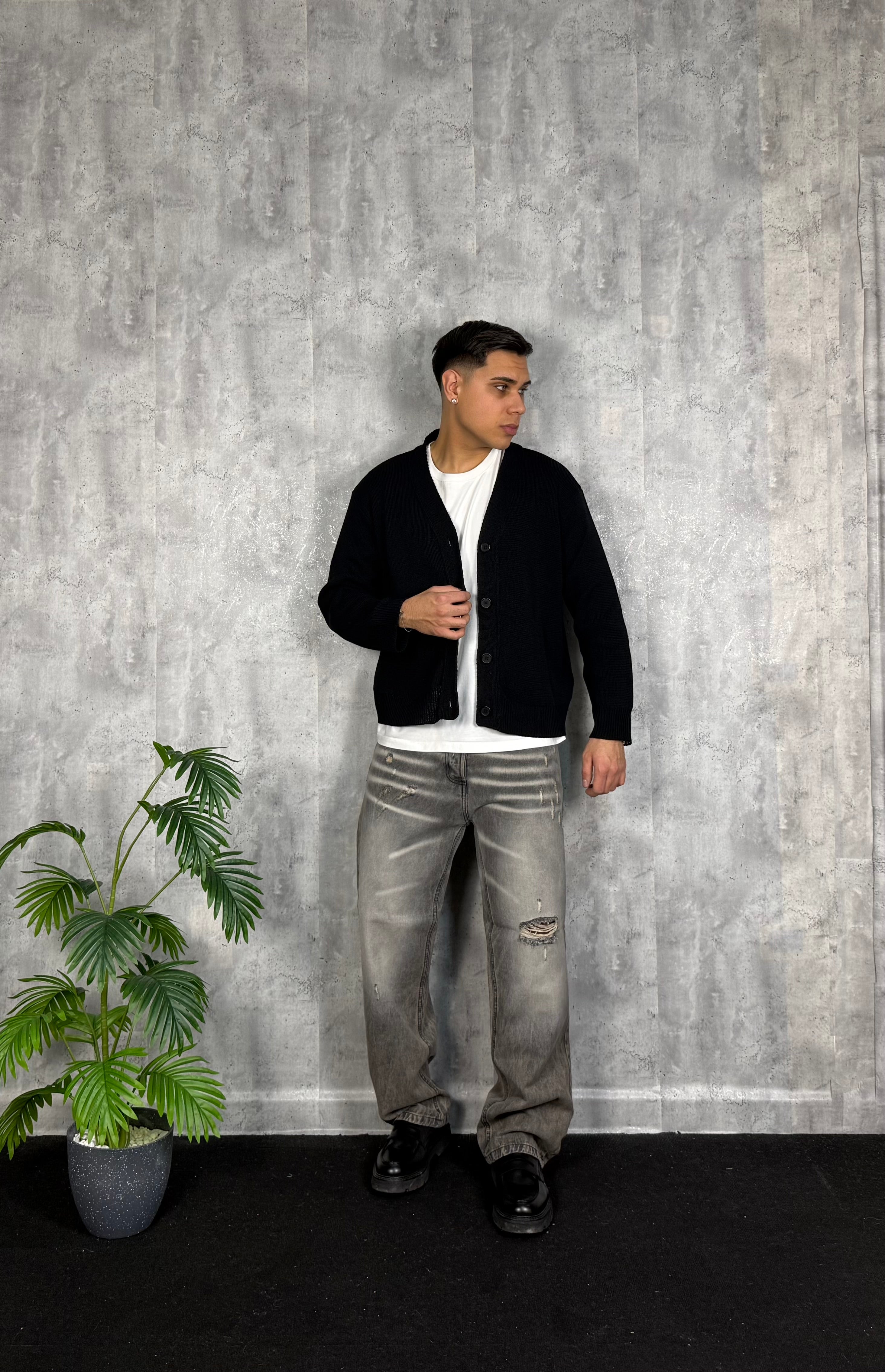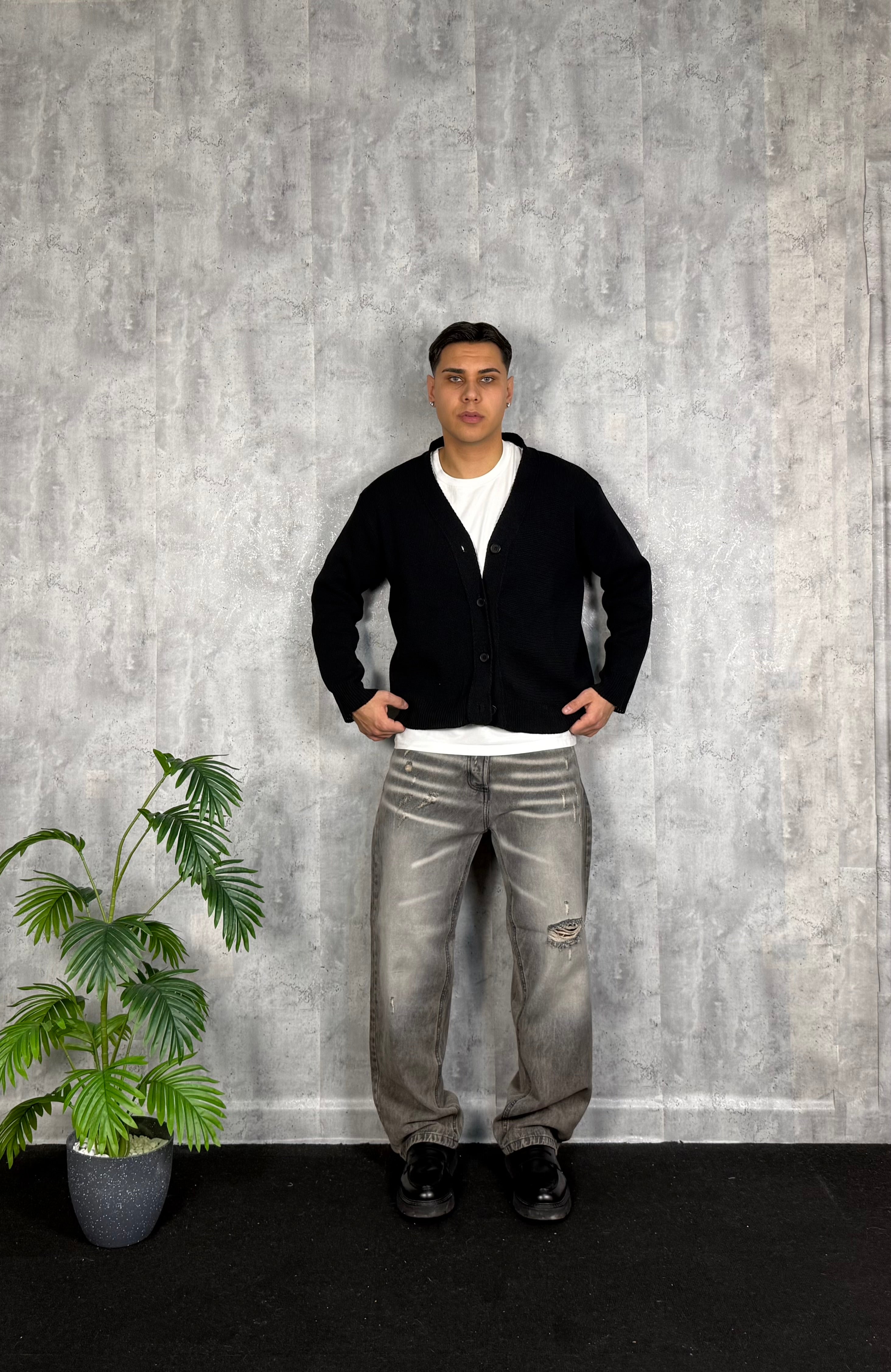 Il modello è alto 180cm x 76kg. Indossa una L. Cardigan in filo cropped, best seller di sempre