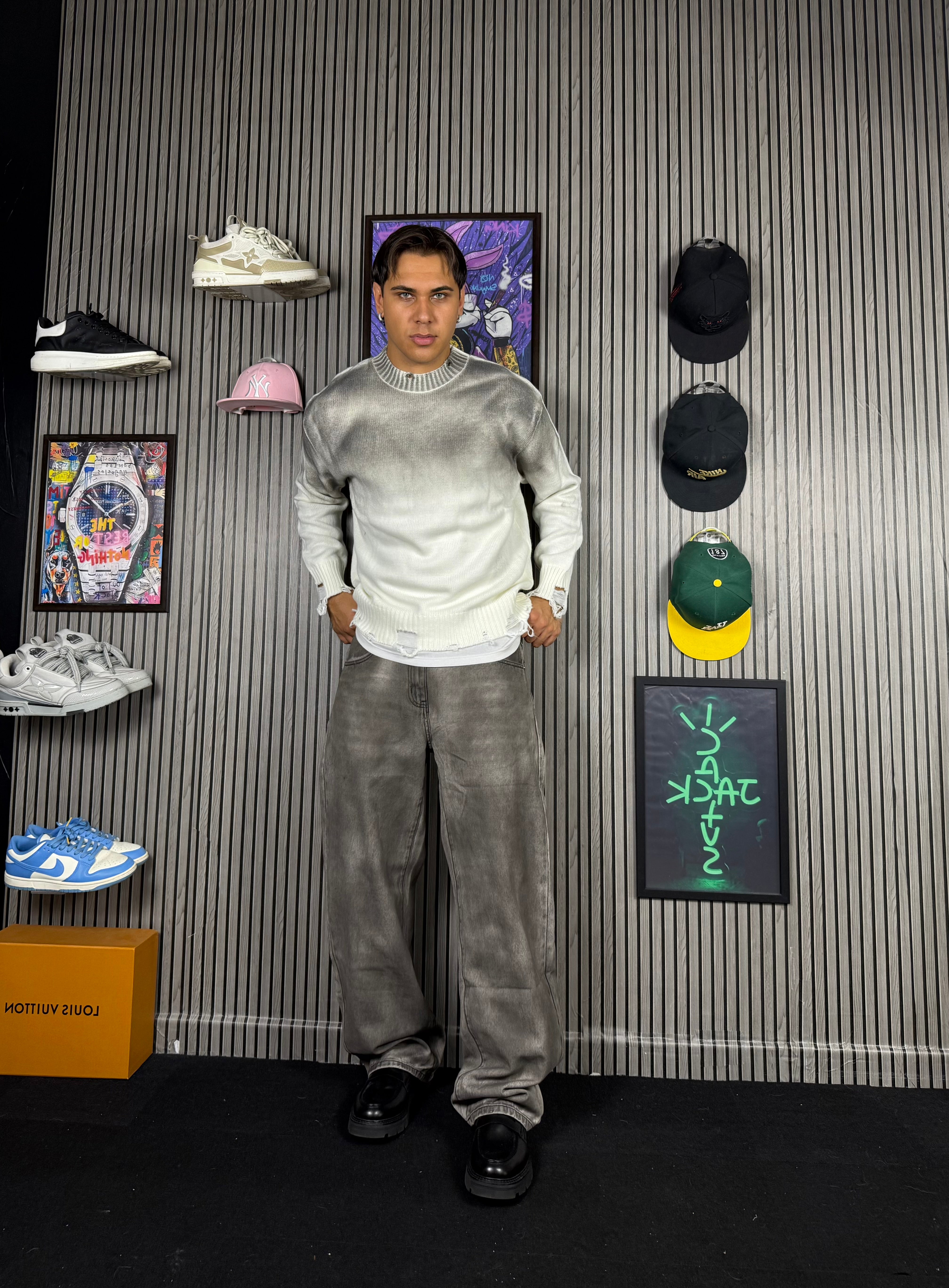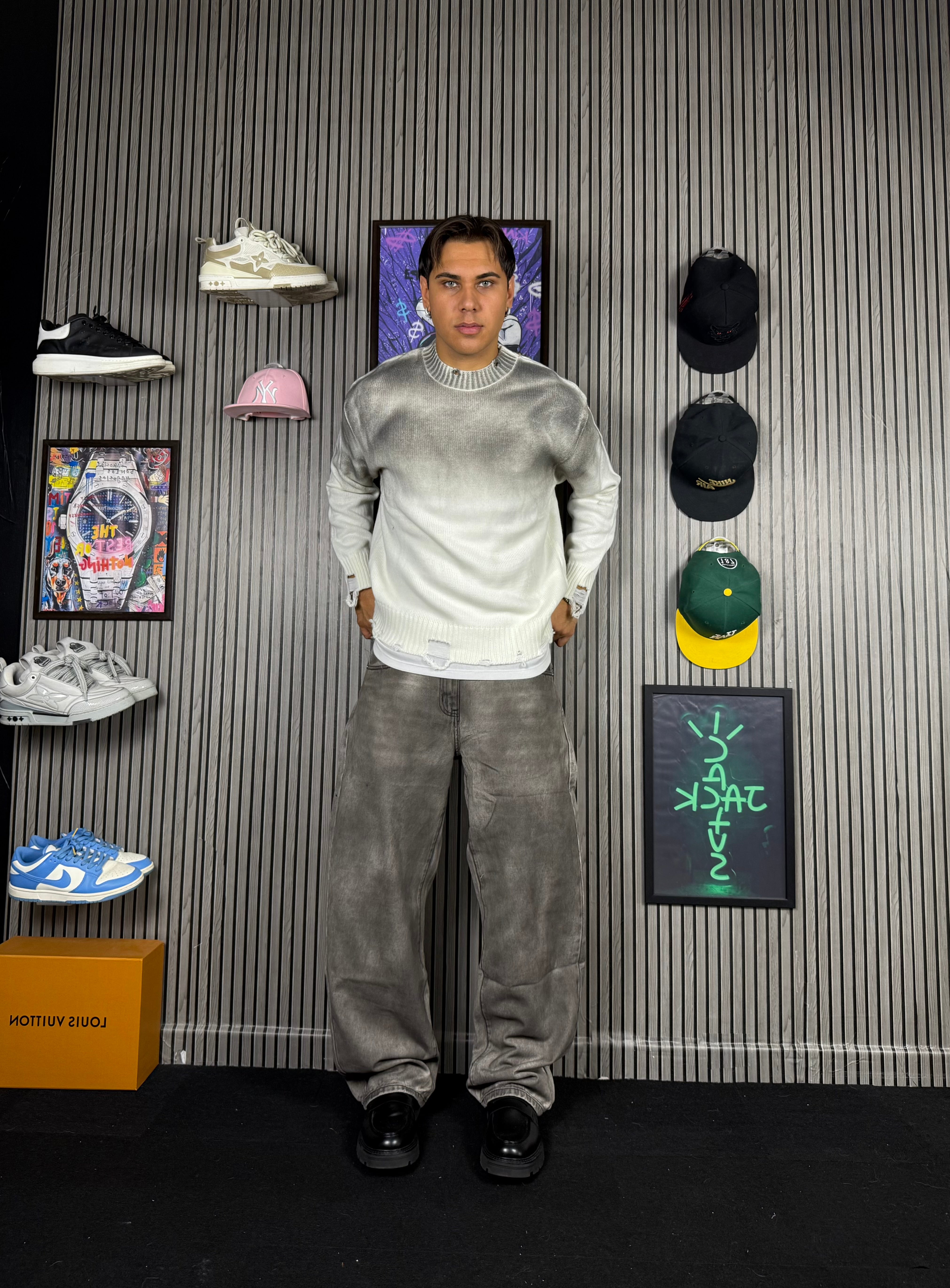 Maglione con sfumature di grigio. Dettagli sfrangiati. Best seller