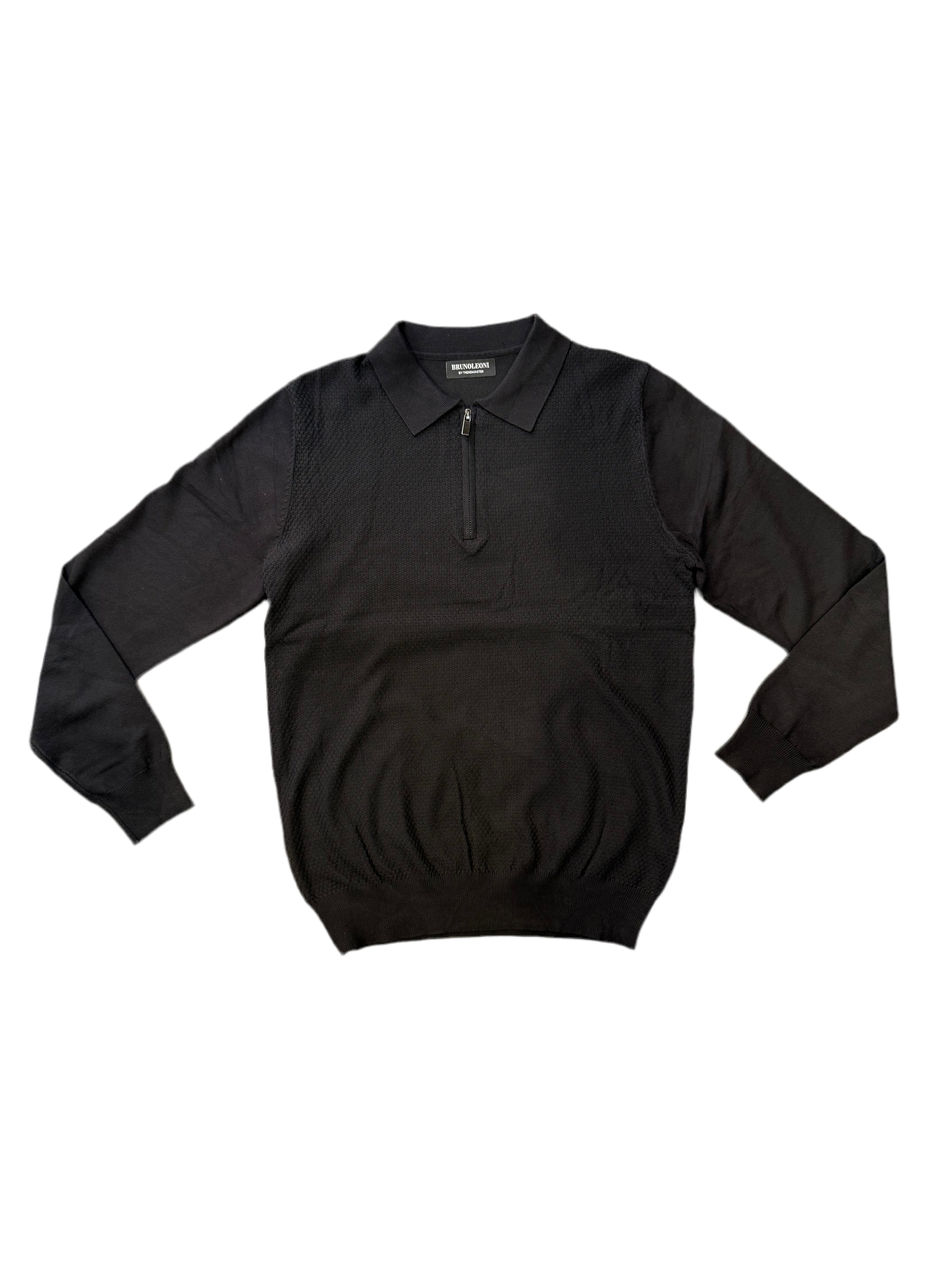 Maglione con tessuto ricamato nido d’ape. Zip e tessuto effetto cashmere