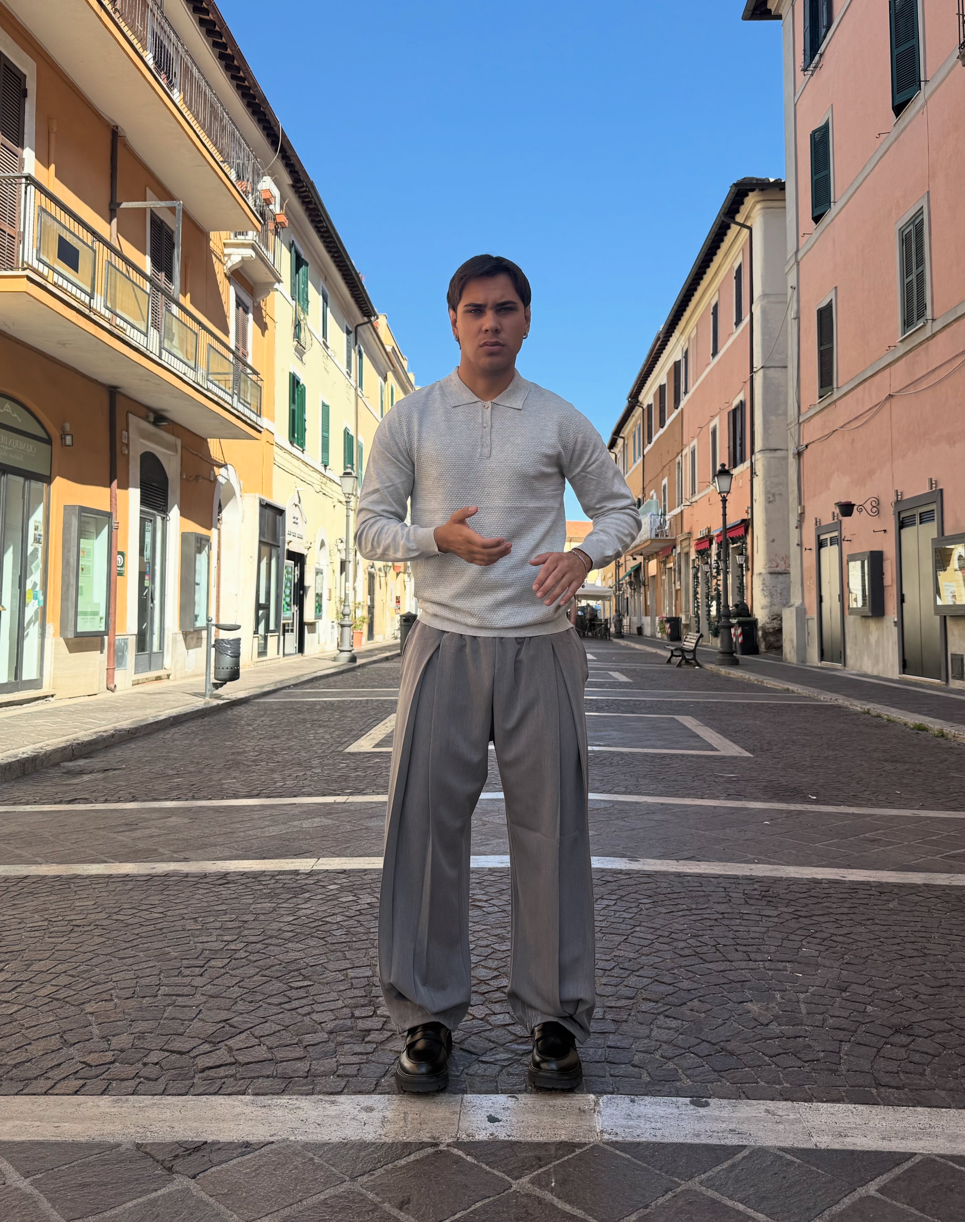 Maglione completamente ricamato nido d’ape con bottoni e colletto. Tessuto effetto cashmere. Qualità alta