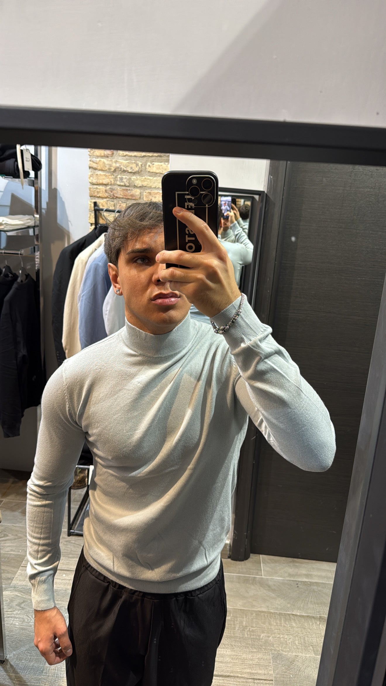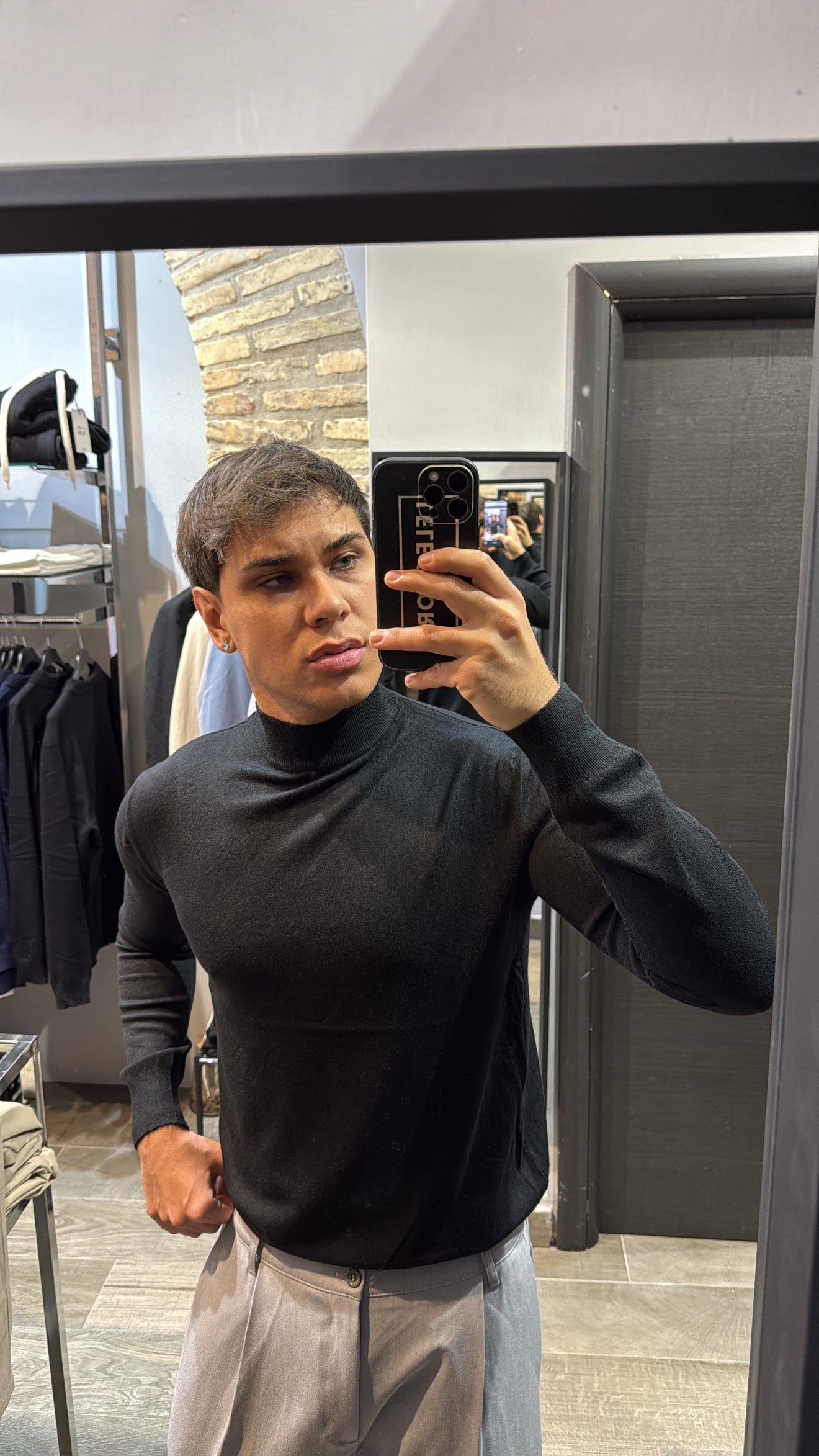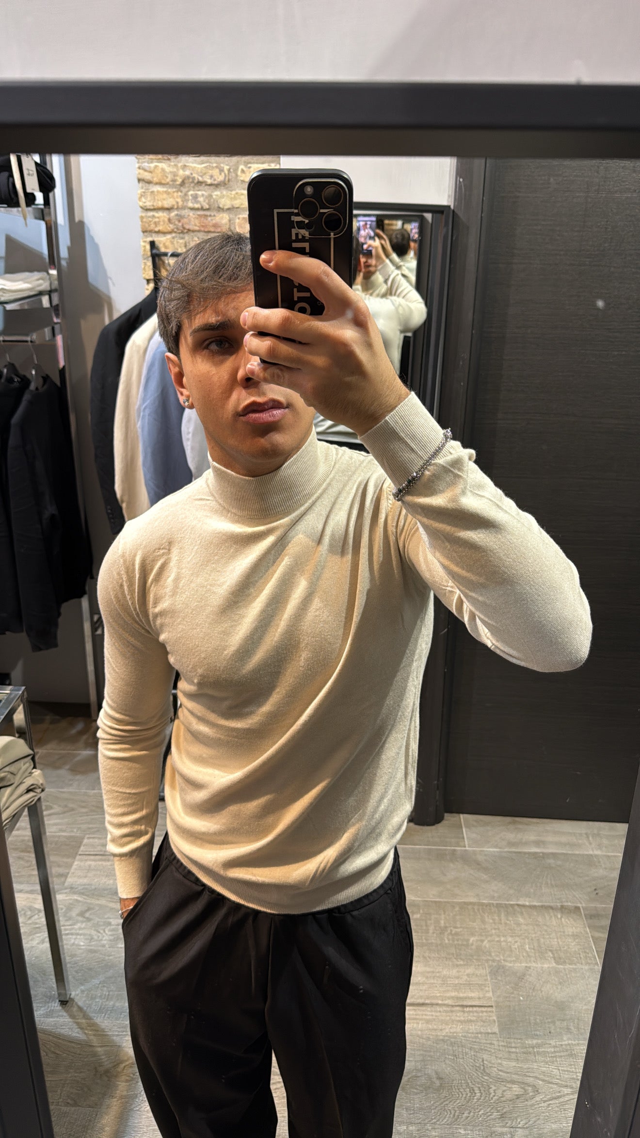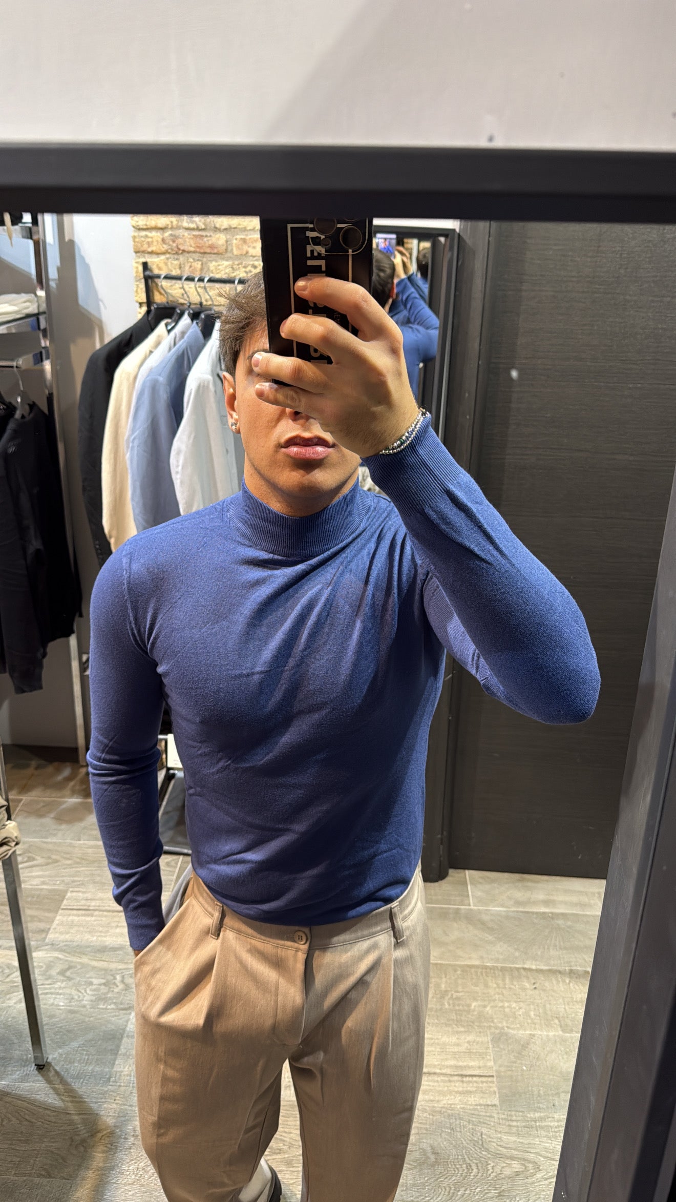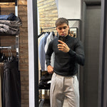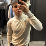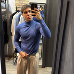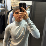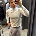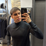 Il modello in foto è alto 180cm x 76kg. Indossa una L. Maglione mezzo collo in filo, vestibilità slim. Effetto cashmere il tessuto. Best seller in tutte le varianti. Si consiglia di prendere una taglia in più