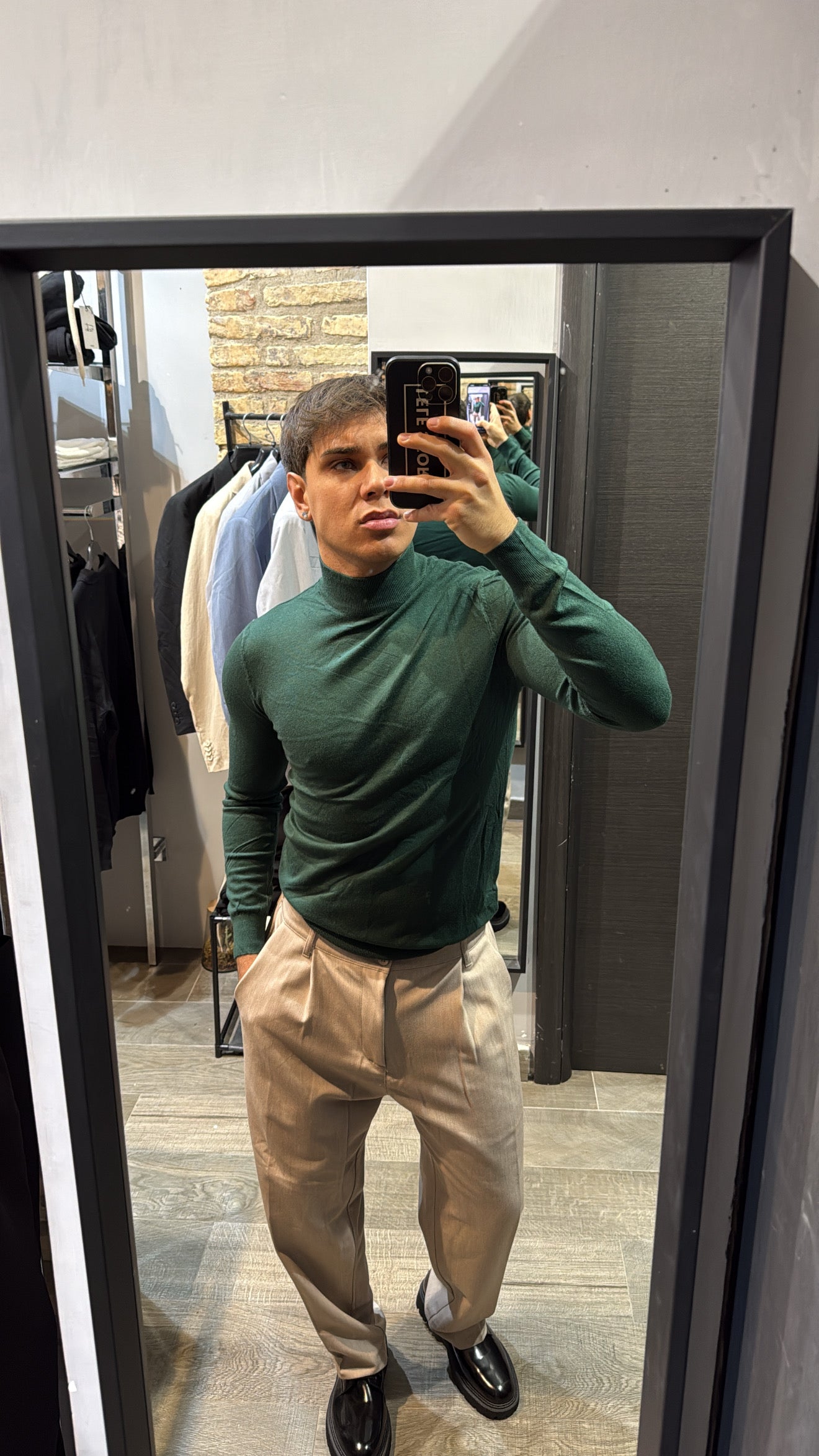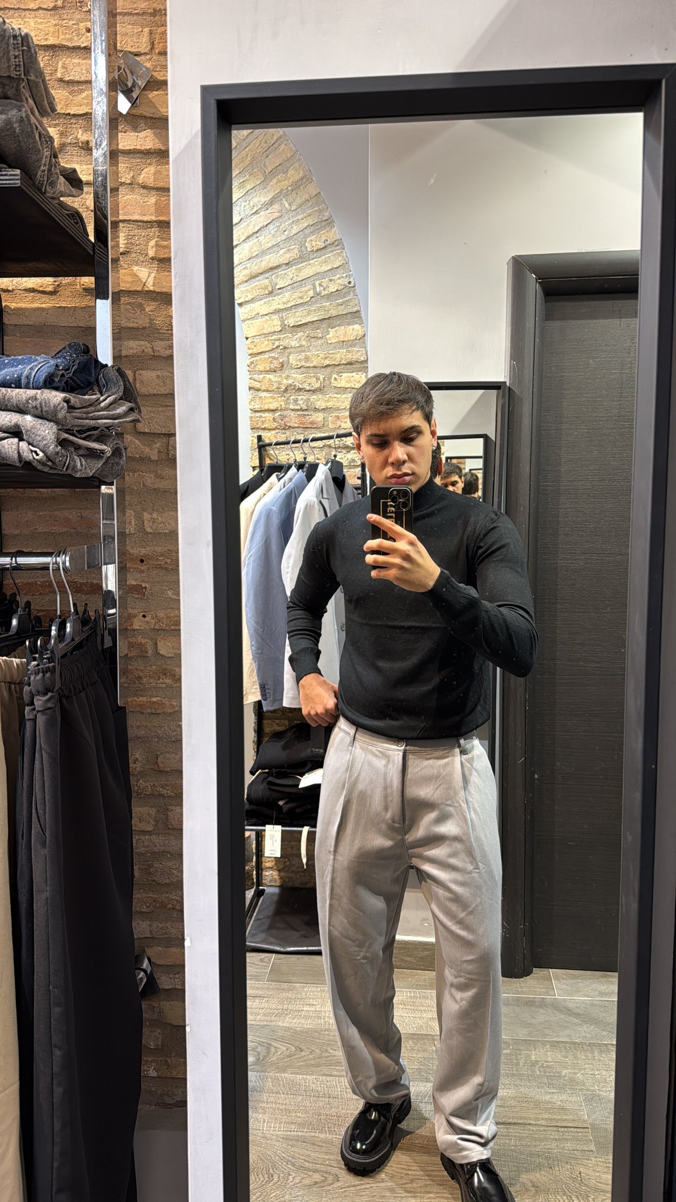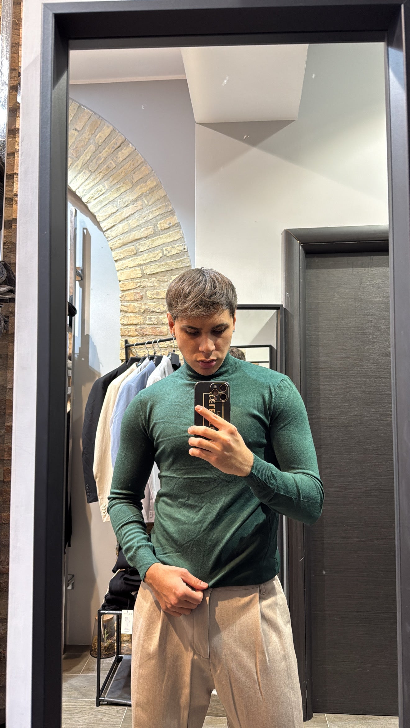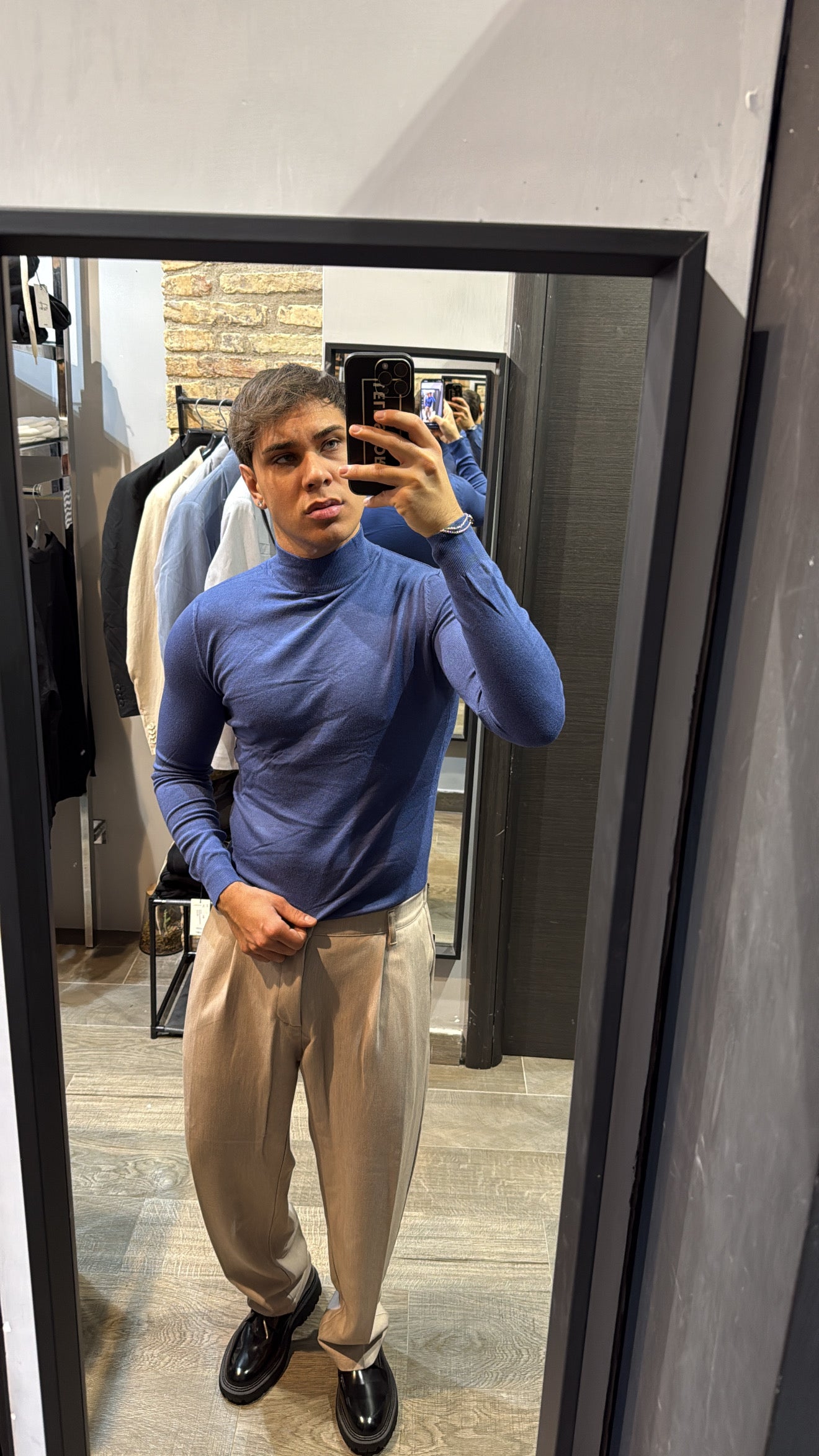 Il modello in foto è alto 180cm x 76kg. Indossa una L. Maglione mezzo collo in filo, vestibilità slim. Effetto cashmere il tessuto. Best seller in tutte le varianti. Si consiglia di prendere una taglia in più
