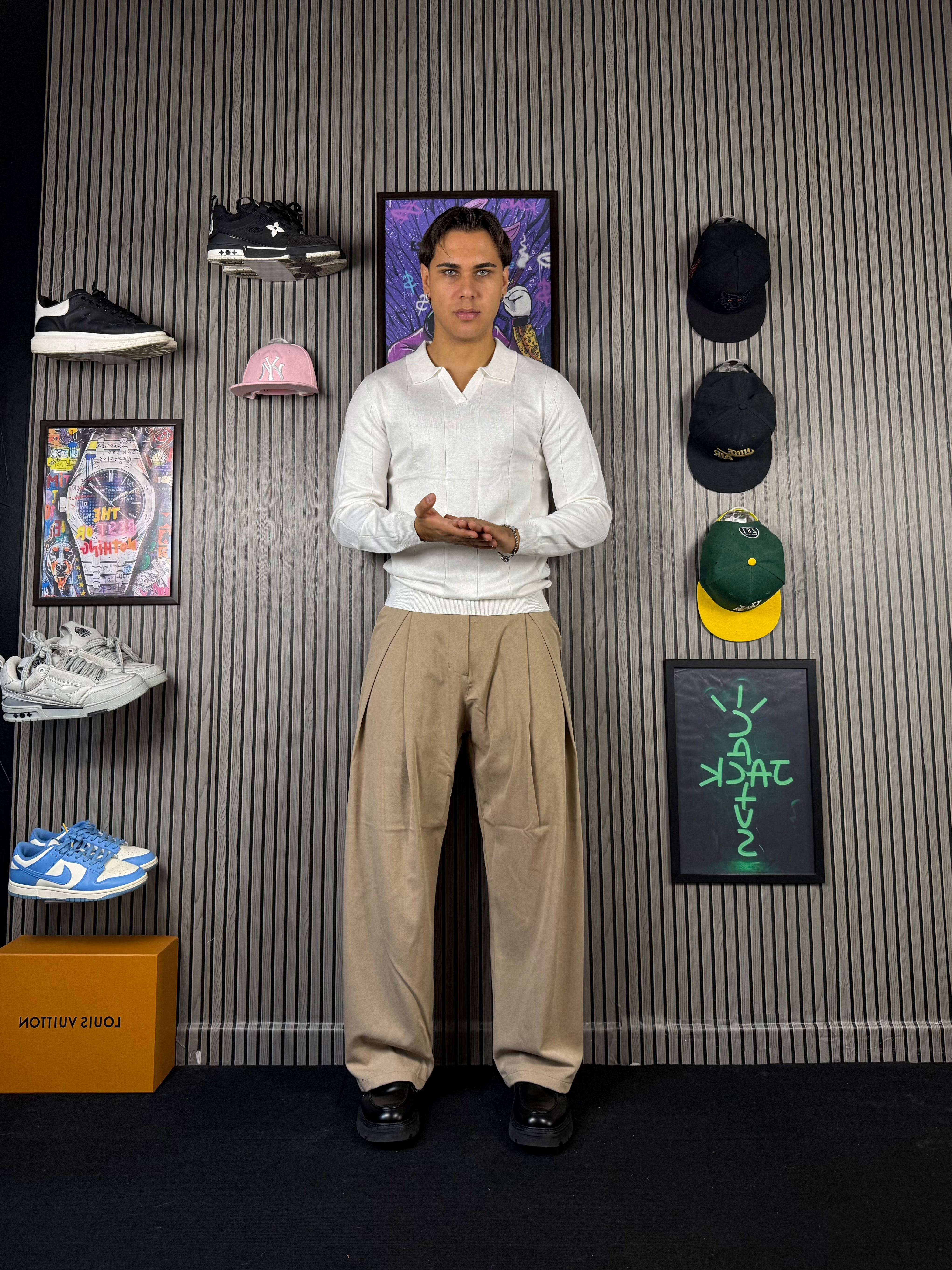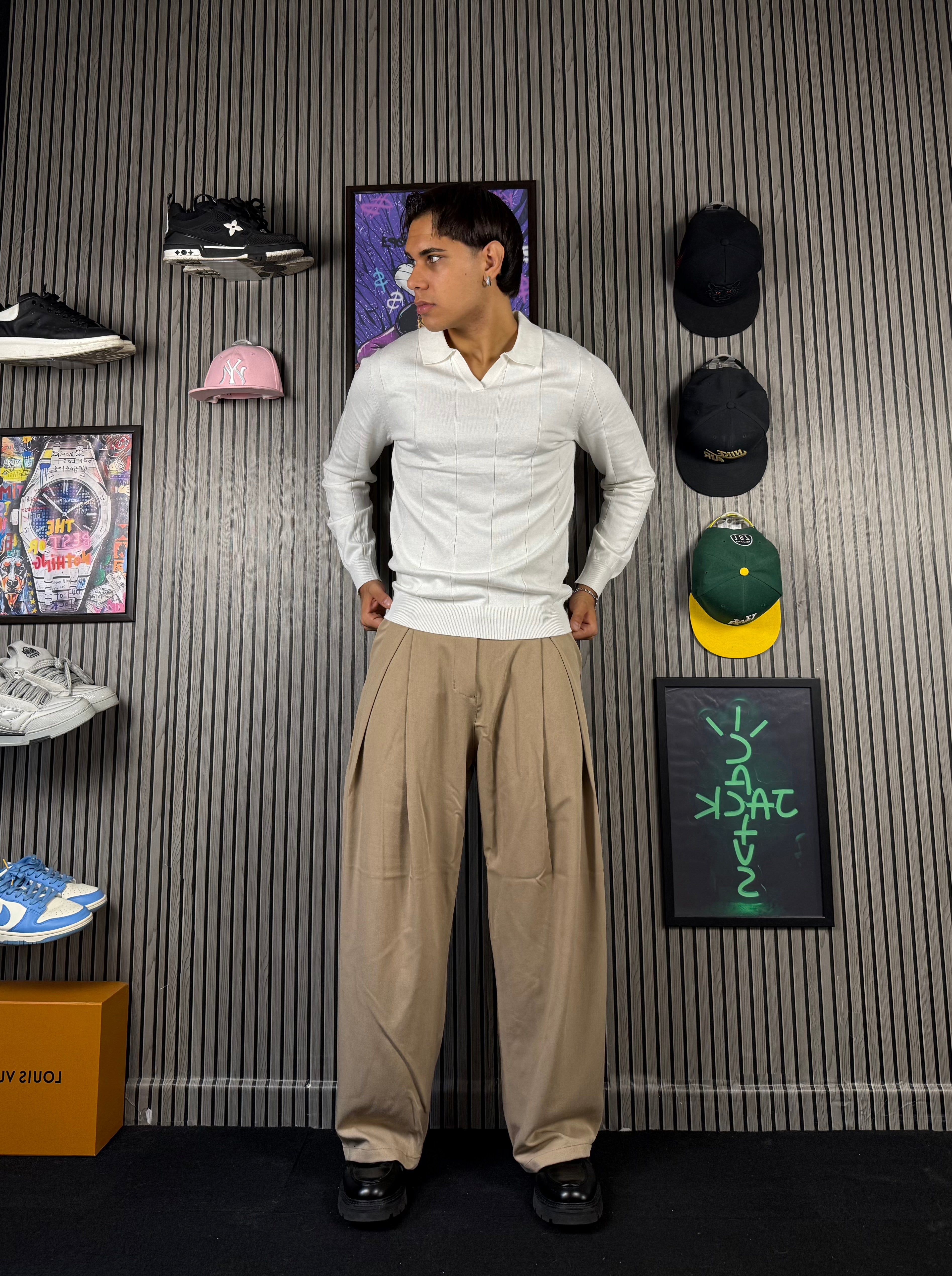 Polo in filo con tessuto ricamato e collo a V. Best seller in tutte le sue varianti