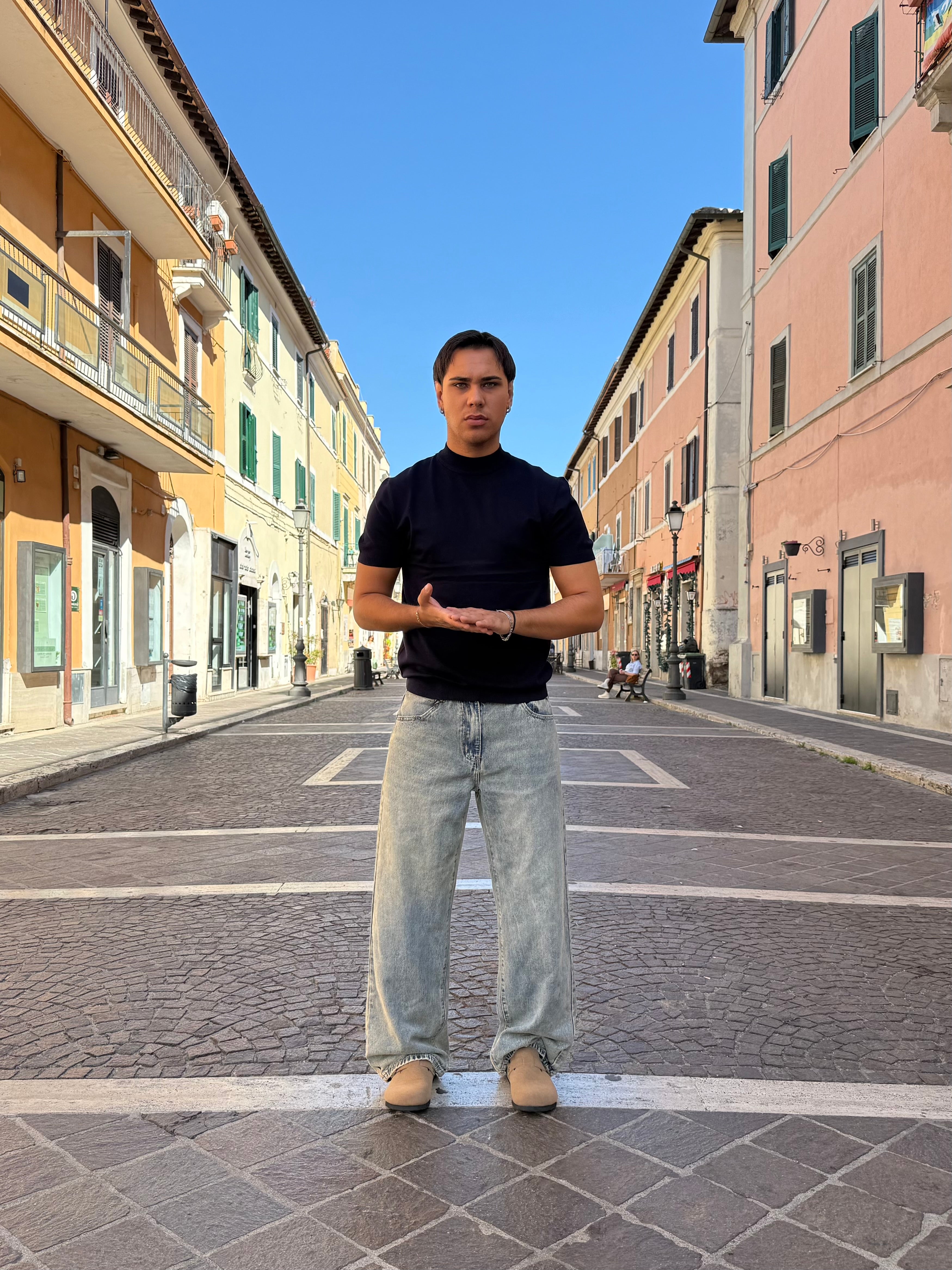 T-Shirt tessuto 240g in filo. Mezzo collo. Vestibilità slim.